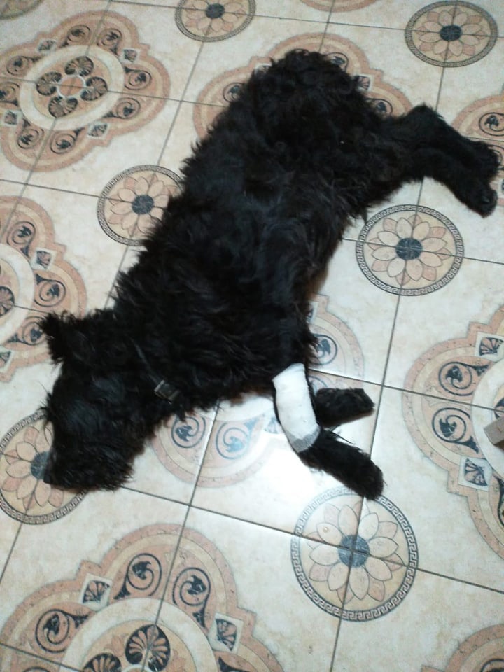 Лапу зашивать отказались, так как рана старая.