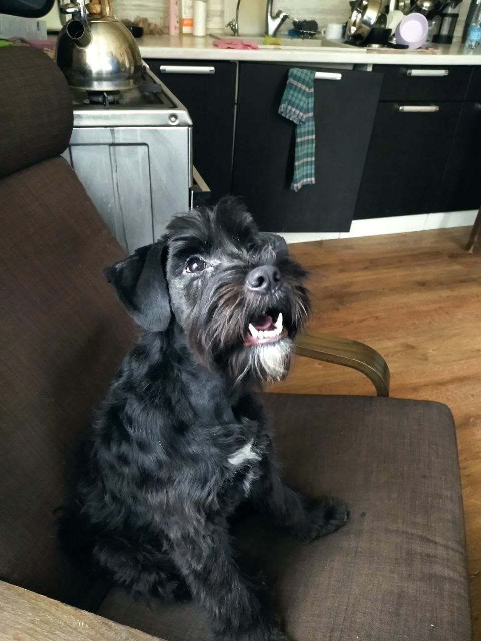 По размеру планирует вырасти миттелем. Может метис, может народное разведение, но шнауцер там явно близко пробегал.