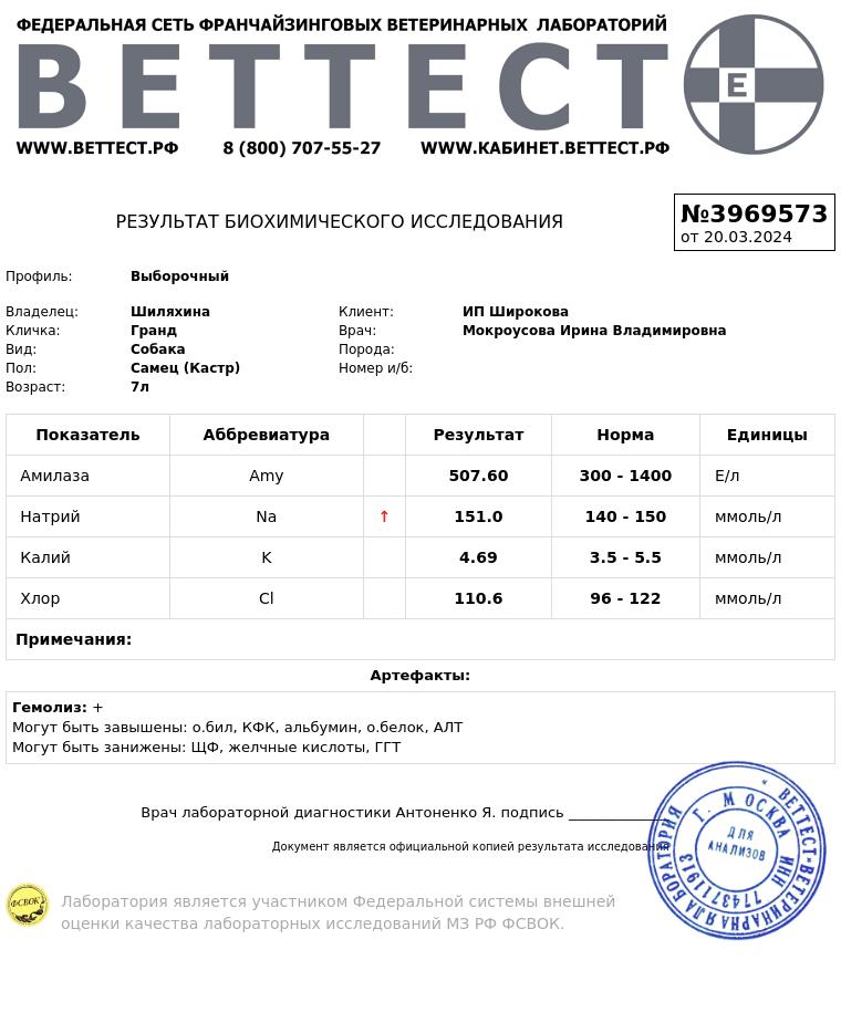 Посмотрим, что скажет веттест, анализируя пробу через сутки.