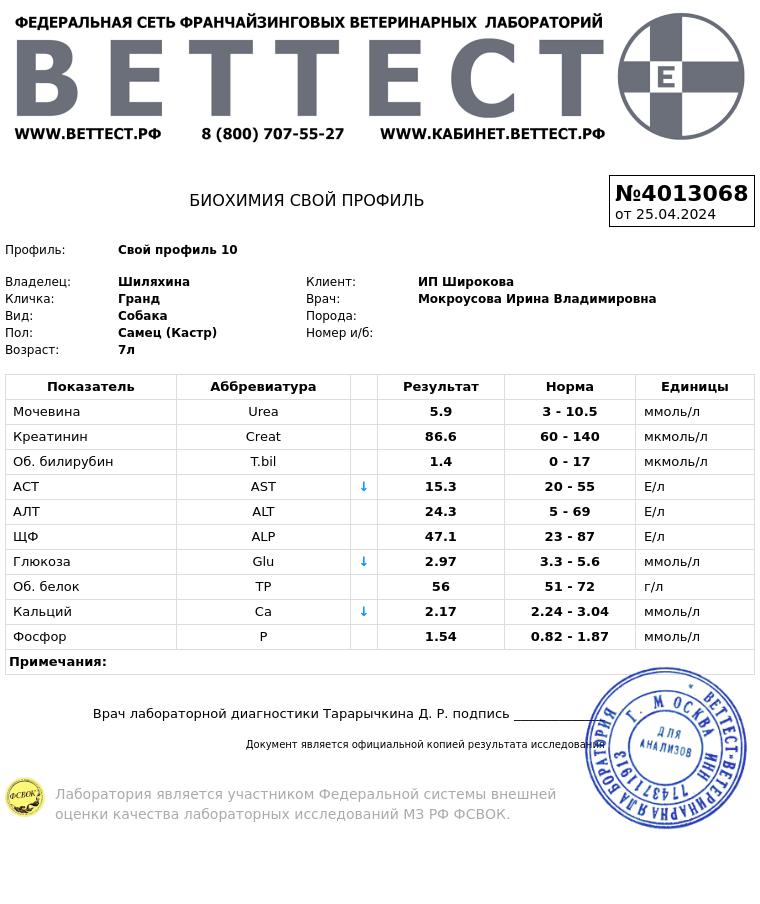 И про "пользу кастрации" - кальций до нормы не хочет подниматься.....