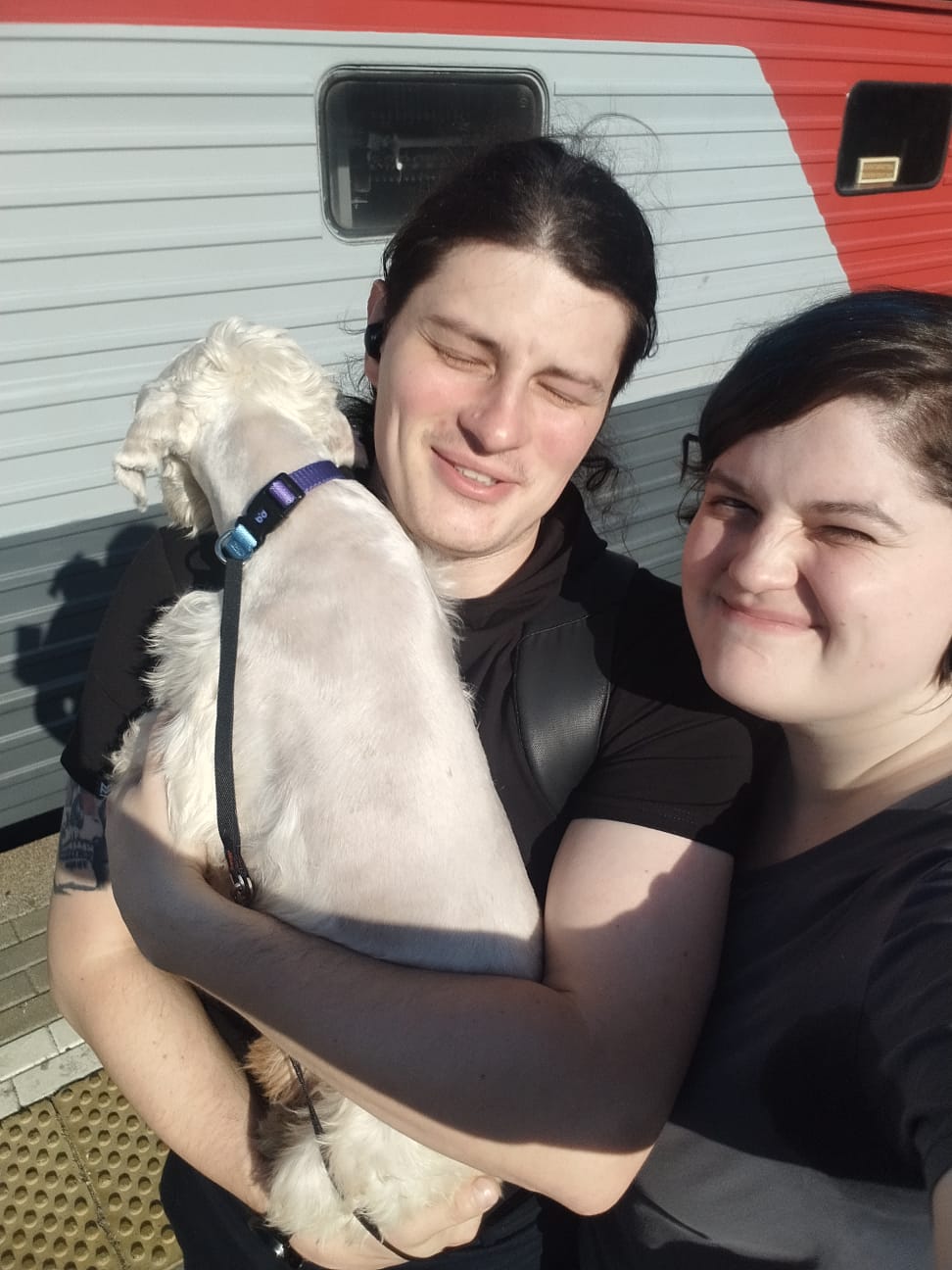 Когда забрали с поезда Гендальф был очень сильно напуган. Сам идти отказывался (включал осла). Приходилось таскать на руках. Когда приехал к дому, надеялись, что хоть в туалет сходит, но он просто лежал на траве и громко дышал. Принесли домой помыли и только на пол поставили , он начал сразу делать все и сразу. После нашел лежанку и в нее забился. Когда попривык , начал изучать дом. Познакомился с кошкой. Кошка его проигнорила и запрыгнула на тумбу. От разочарования он пометил эту тумбу.