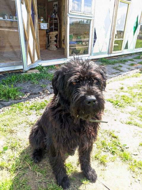 В Николо-Ленивце лохматый зверь болтался в парке, потом прибился в автосервис. Вроде люди видели, как собаку высадили из машины.