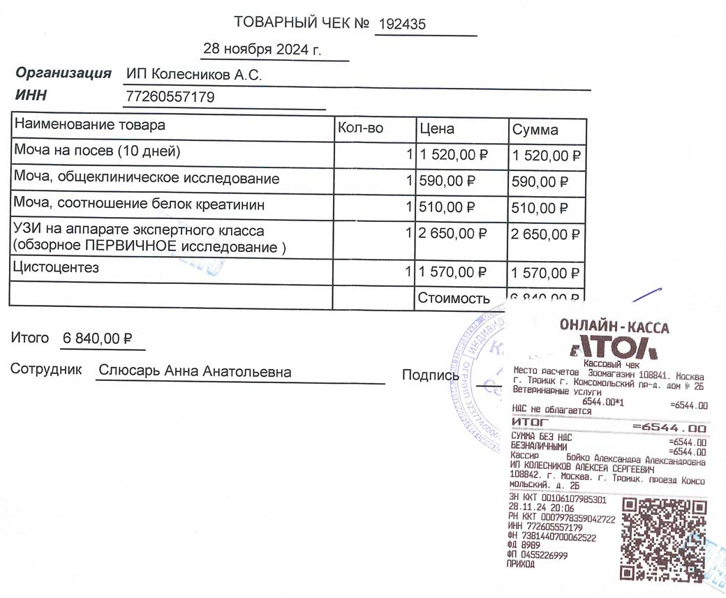 Прикреплю чеки на пропалин и на проведённые исследования (на пропалин там остальные товары мой личный заказ, я как-то не сообразил отдельным заказом пропалин оформить).