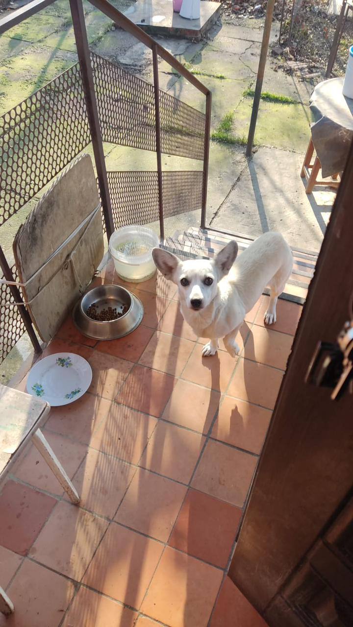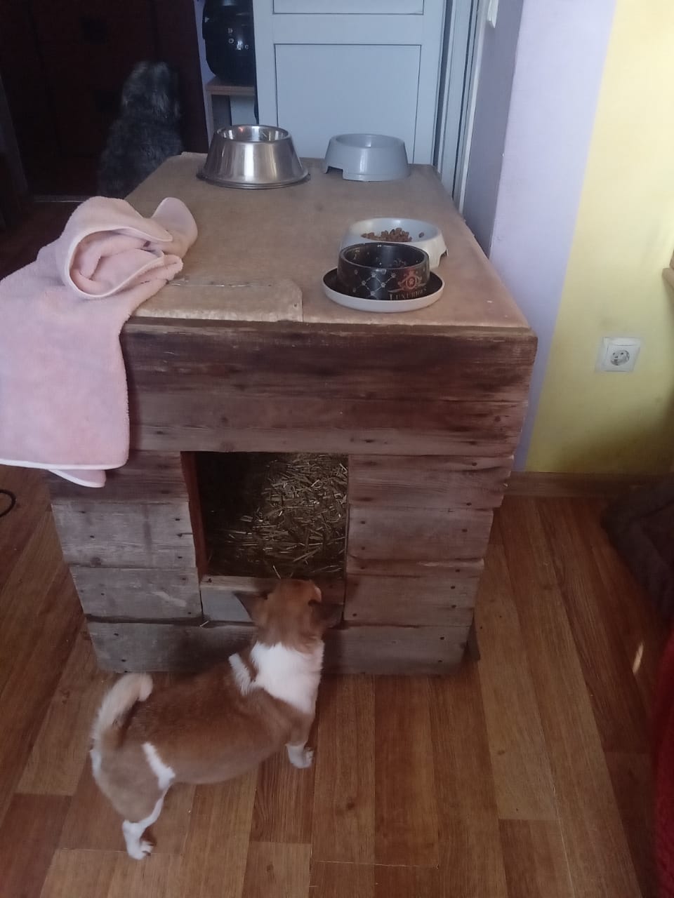 И к Бартосу прилагается бонус в виде блондинки Луны. Они жили вместе. Инне ее жалко стало в приют отправлять, и ее забрала. Привезли ее прямо с будкой вместе, так и погрузили.