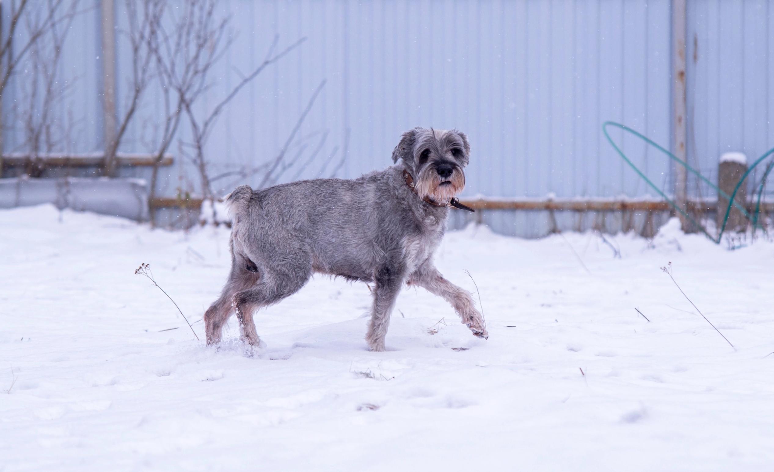 Не любит глубокий снег.бегает по дорожкам,в сугробы не лезет.