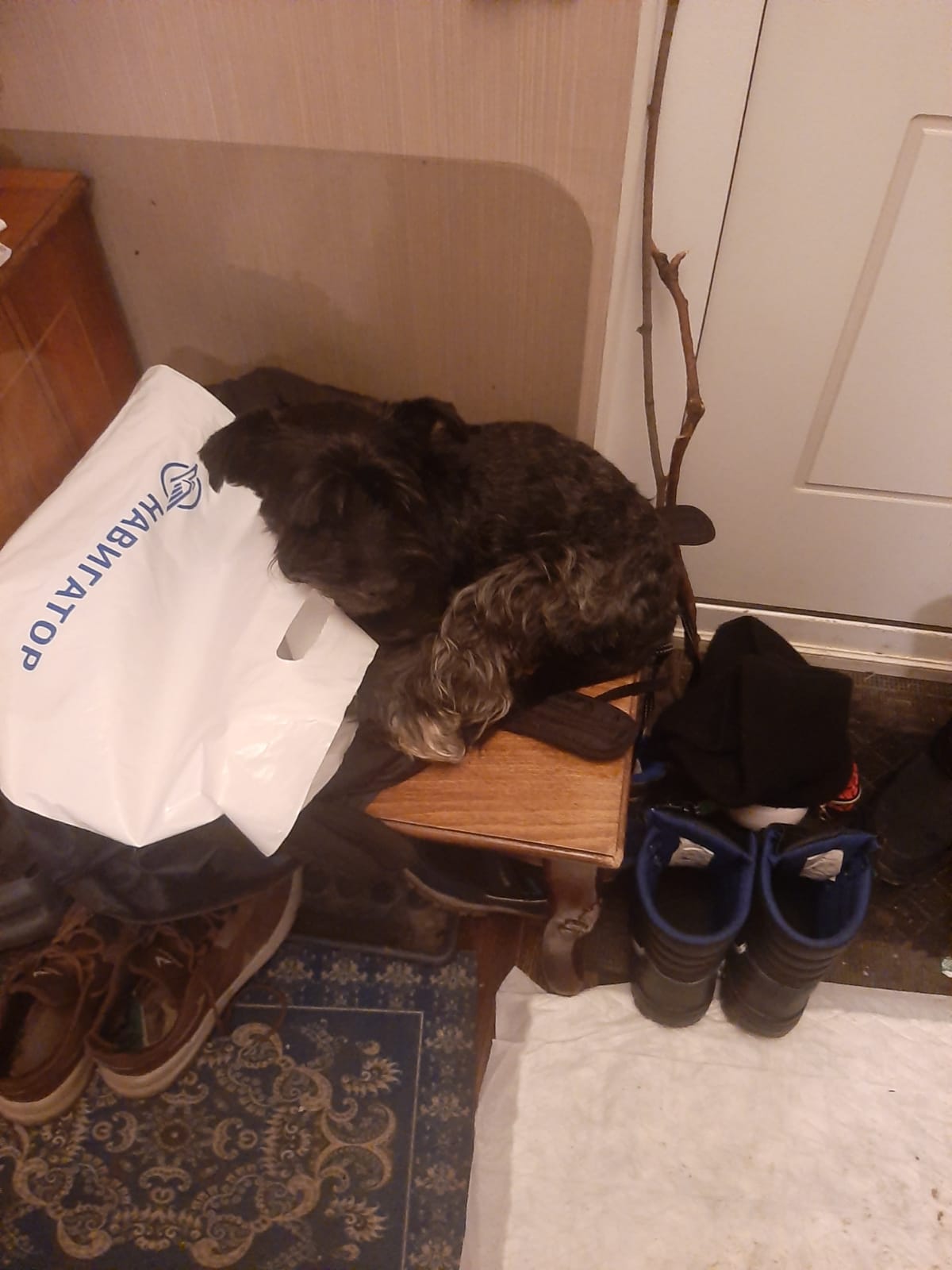 Сегодня ночной перерыв 8 часов. Проснулся Остин и сразу побежал в коридор на коврик сидеть и ждать прогулки. Минут 10-15, пока собиралась, вполне себе вытерпел без суеты."