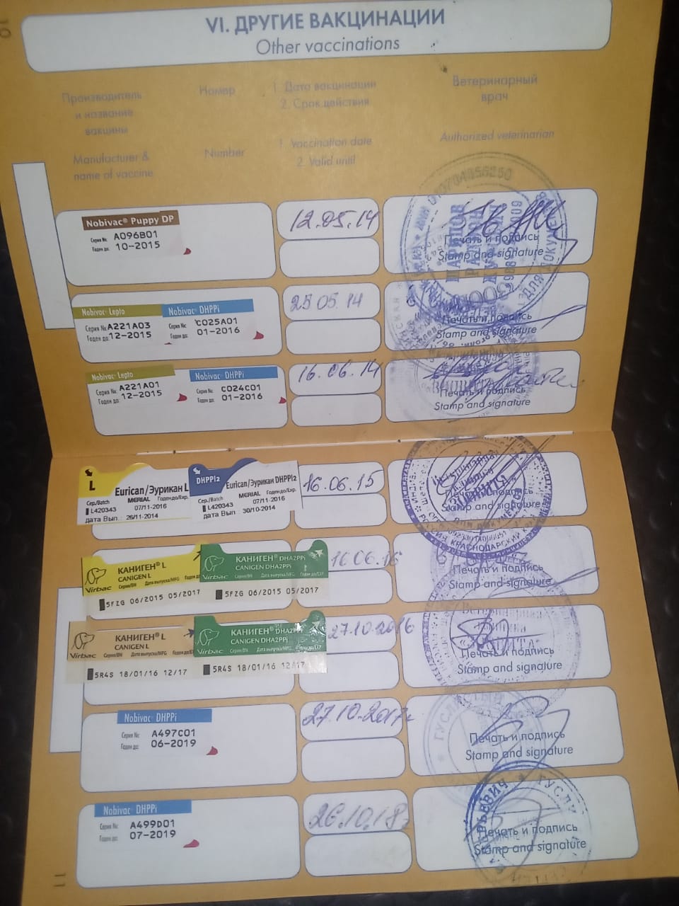 Ветпаспорт с прививками