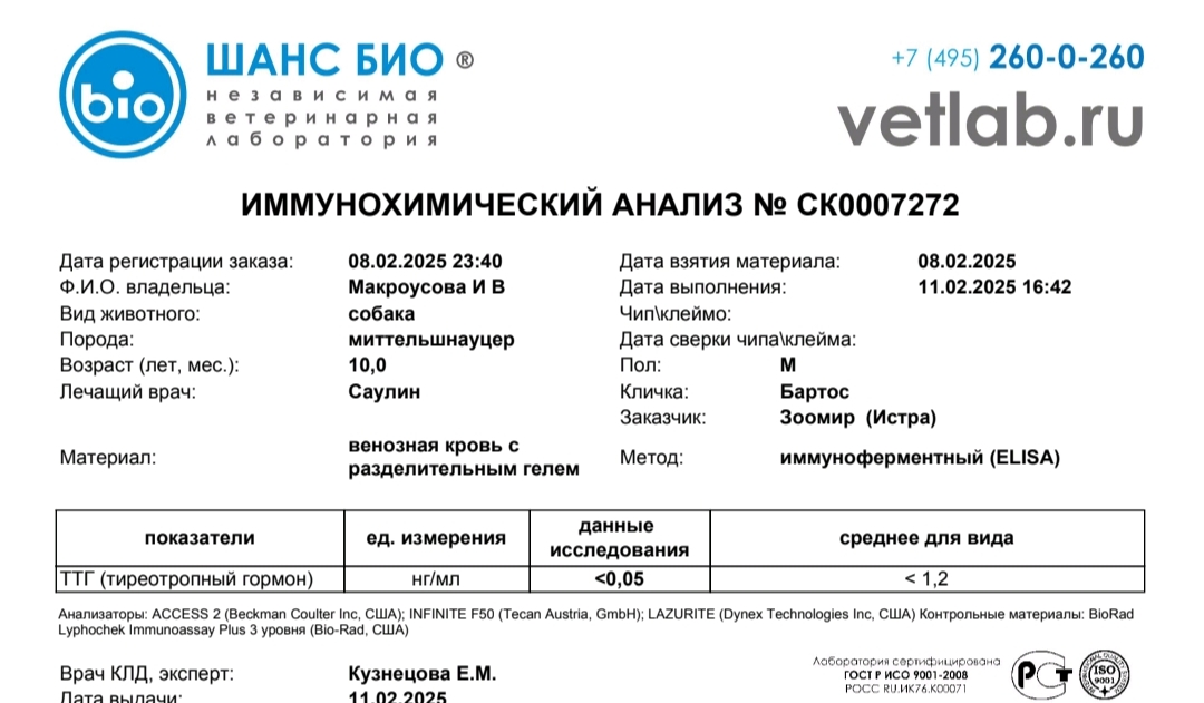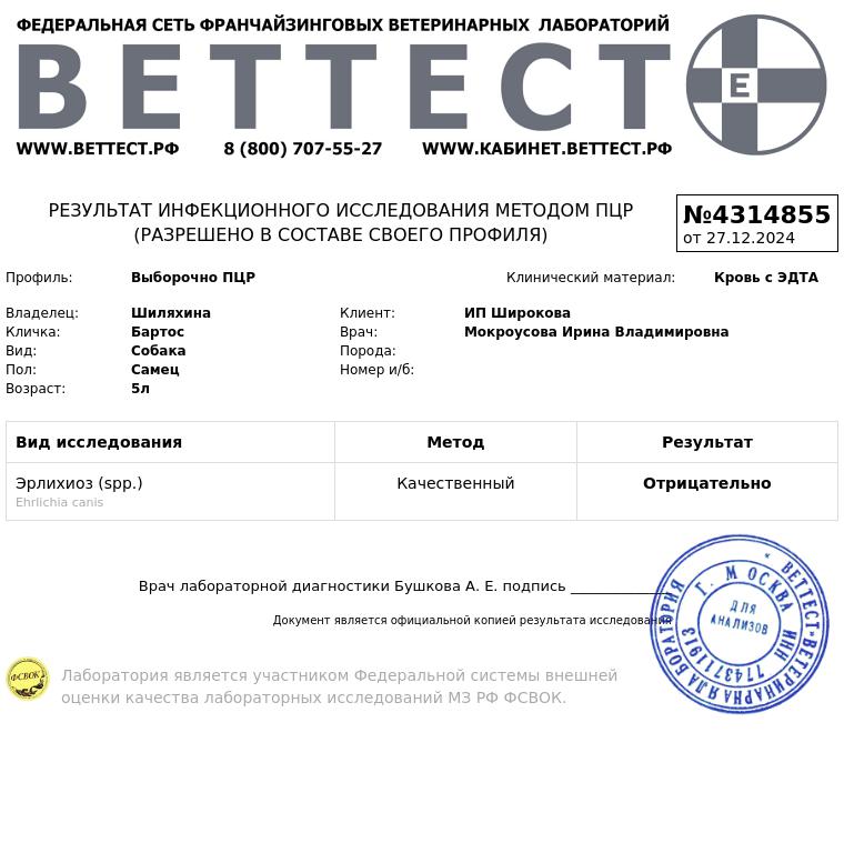 Сдали кровь: клиника, дирофиляриоз по Кнотту и ИХ, эрлихиоз ПЦР и биохимию максимальную.