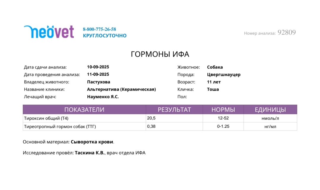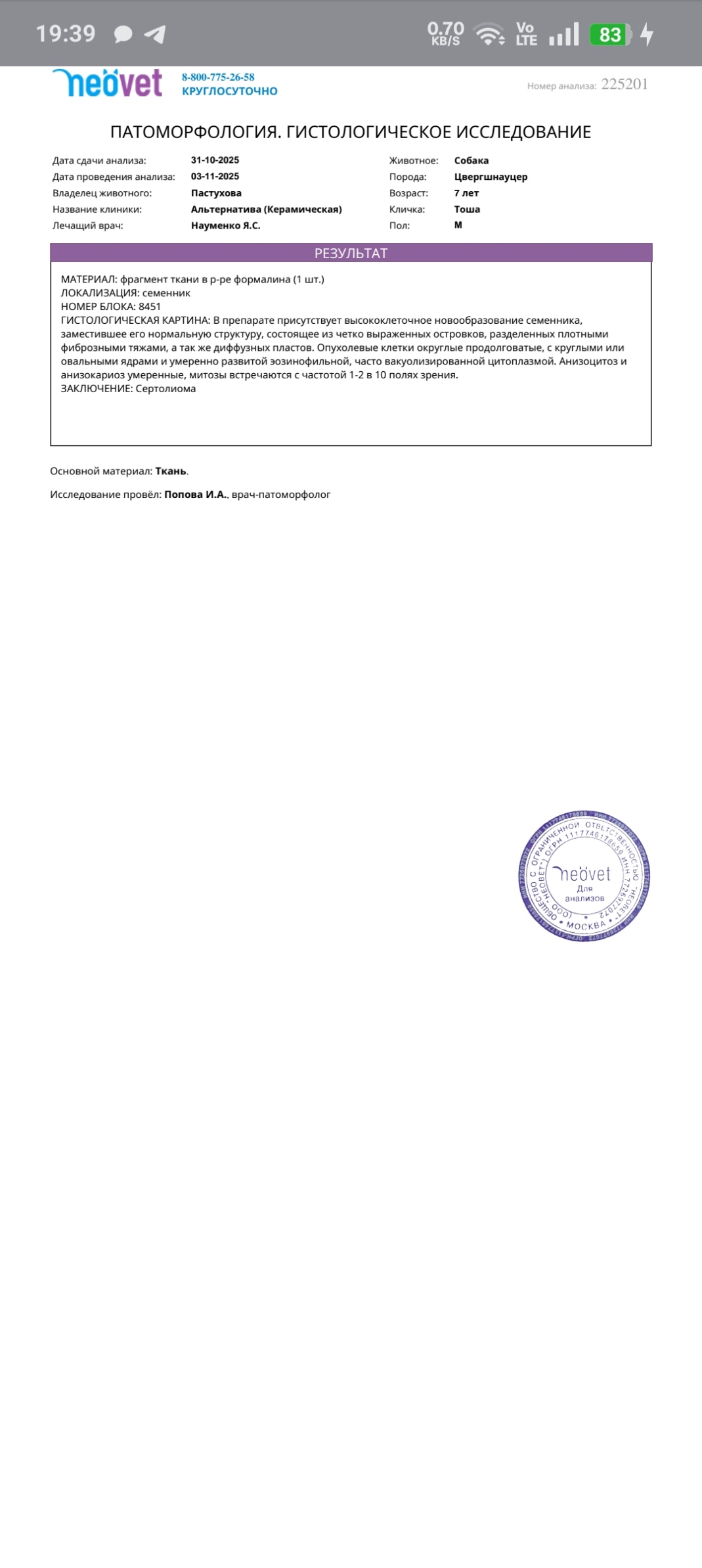 Данные о животном: собака , цвергшнауцер, Тоша, кобель, 2014 г.р.