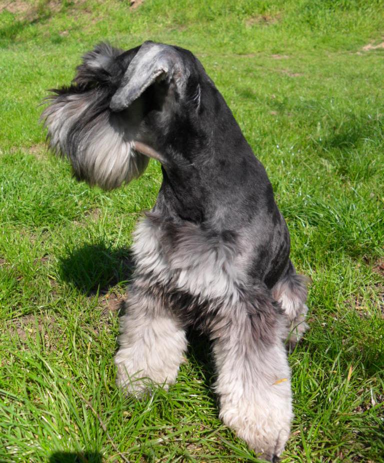 Относительно ухода за шерстью, знаю, что шнауцеров триммингуют и периодически чистят их шерсть щеткой.
