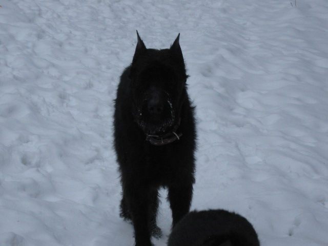 Весь вечер он спит, чуть не описался во сне, пришлось срочно будить. На улице написал целую лужу. У моей первой ризенши проблем с прогулками не было, но если она тайком спала на диване, то лужа была неизбежна. Видно так расслаблялась, что не контролировала процессы. В остальных случаях никаких проблем. Вот такое бывает.