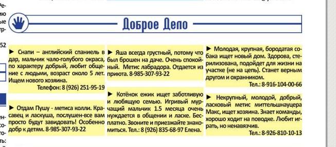 А в этот выпуск Новой столицы не давали еще объявления на наших?