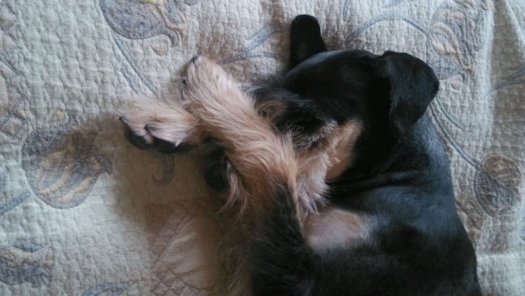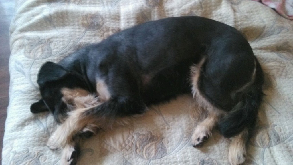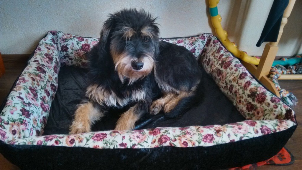 У Линды обновка. Купили лежанку к нам в комнату, любит она пол ночи спать у нас, потом идет к себе в коридор, под утро возвращается))) А когда я встаю, сразу занимает мое место и еще дрыхнет до прогулки.