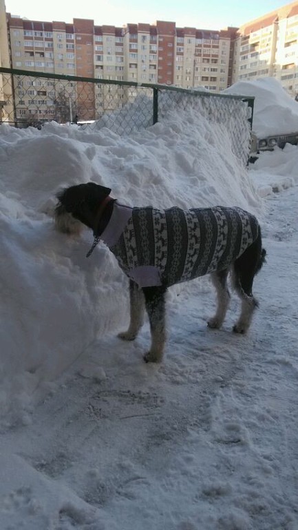 Перед Новым годом навели марафет, одели курточку, шарфик)))) Мужчина шел, спросил, что за порода. Сказали ему, что собака не породистая, так он не верил и сказал, что это не правда)))