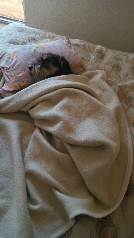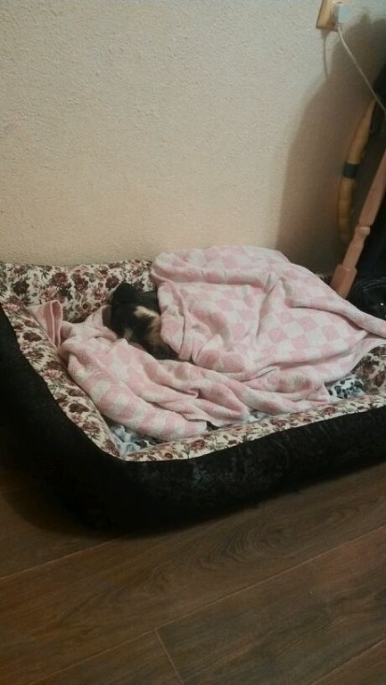 У Линды обновка. Купили лежанку к нам в комнату, любит она пол ночи спать у нас, потом идет к себе в коридор, под утро возвращается))) А когда я встаю, сразу занимает мое место и еще дрыхнет до прогулки.