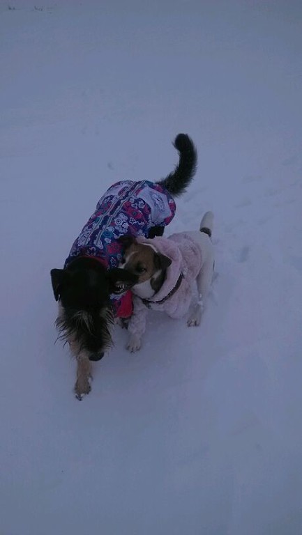 Перед Новым годом навели марафет, одели курточку, шарфик)))) Мужчина шел, спросил, что за порода. Сказали ему, что собака не породистая, так он не верил и сказал, что это не правда)))