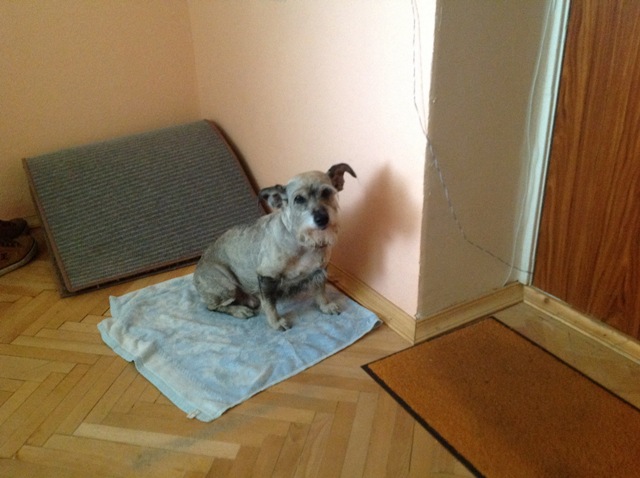 Только что разговаривала с Олегом, держат только до завтра. Сейчас отправит мне еще фотографии, попросила сделать фото в стойке. Клейма нет, в клинике сказали что предположительно цвергшнауцер.