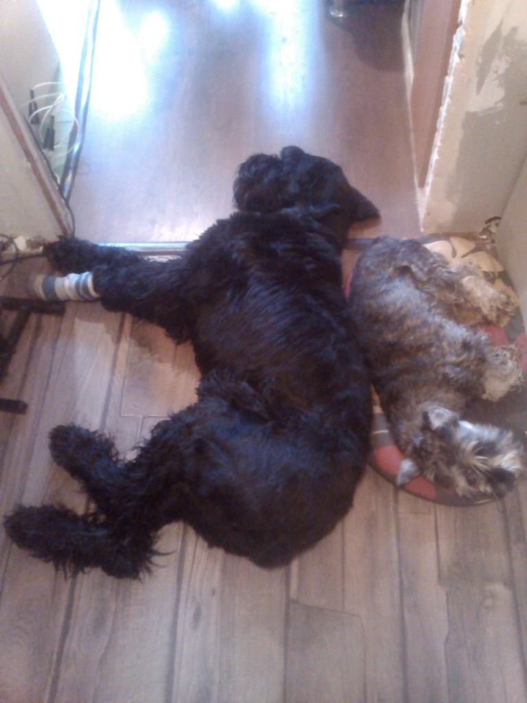 Мы очень долго восстанавливались после операции на ухе. Шов зажил, а вот опухоль образовалась снова и не хотела проходить, несмотря ни на что. Как я поняла, это вина врача - изначально необязательно было ухо сразу оперировать; но, раз уж это сделали, потом нужно было правильно бинтовать. В результате, он два месяца ходил забинтованный и в шапочке, и вот, наконец, всё зажило. Правда, не успели мы вздохнуть с облегчением, как он разрезал подушечку... Теперь ходим с забинтованной лапой. Просто пацан-авария какой-то