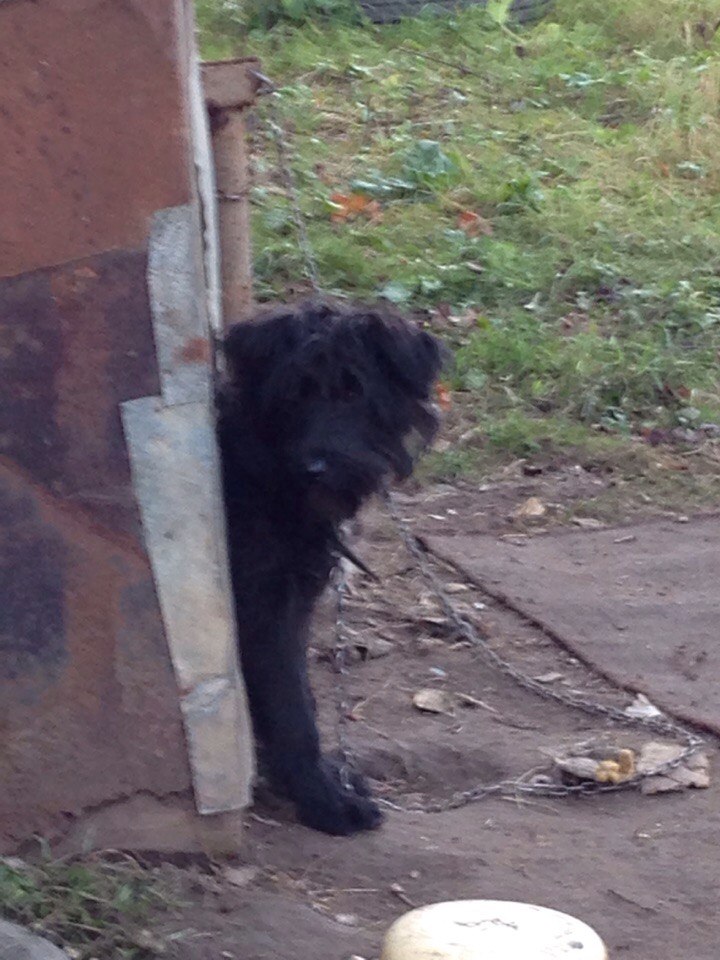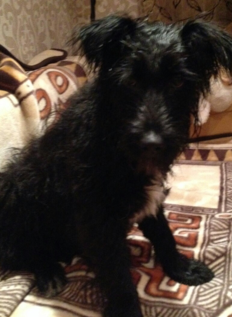 клейма у Мухи нет, с виду, по-моему, шнауцер, но вам виднее. Может быть, помесь. Если ее еще немножко откормить и красиво подстричь, с фирменной бородой и бровями, будет очень красивая собачка. У нас в городе собачьих парикмахеров немного, с деньгами у меня сейчас напряженно, машинки для стрижки нет, а в условиях нашей зимы (в среднем -25-30, в январе иногда бывает -40) лучше иметь шерсть подлиннее, тем более при наличии отсутствия комбинезона))) Шерсть жесткая, выщипывается, но не густая, может быть, она еще маленькая? Когда нашли, вид был, конечно, кошмарный. Сейчас не очень, но лучше чем было.