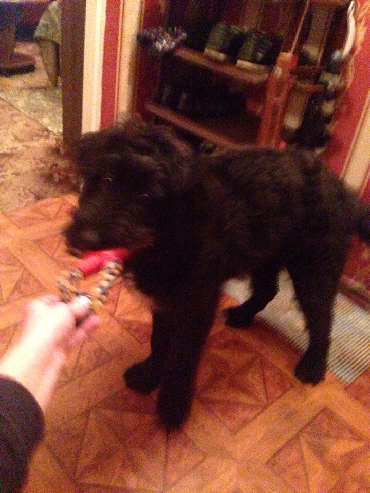 Муха - молодая девочка, зубы все, наверное, ей не больше года, хотя я не эксперт. Очень активная, подвижная. Ласковая, веселая, дружелюбная, любит играть с детьми. Любит общаться со всеми: людьми, собаками, кошками. Хочет играть с кошкой, но кошка у нас злая, ненавидит ее. Знает некоторые базовые команды, но иногда капризничает. Грызет все, любит игрушки. В квартире не лает, но не можем приучить оставаться дома одной - воет. Выгуливать приходится 3-4 раза в день, раньше еще чаще, сейчас привыкла немного, дома не писает, терпит до последнего. Подбирает на улице всякую дрянь. Если с ней правильно заниматься, то выучится быстро, сообразительная очень. Нашли в сентябре на помойке в дачном поселке, наверное, кто-то привез на дачу, а потом бросили, там бегало много брошенных собак, наша выглядела совсем уже как полумертвая, поэтому подобрали, видно было что жить ей оставалось недолго. Была худая, ножки как спички, торчали кости везде, очень голодная (подбирала с земли и ела бумагу), вши, шерсть свалявшаяся, пришлось коротко остричь. Глисты комками выходили. Кормим субпродуктами (сердце, печень, рубец, обрезки, кости), рыбой, дешевой курятиной и куриными субпродуктами, гречкой, пшенкой, овсянкой, ест вареную капусту, морковь и тыкву. Любит яйца. Иногда перепадает творог и мясо. Корма у нас плохого качества и выходит дороже чем натуралкой, потому что у нас мясо относительно недорогое и хорошего качества.