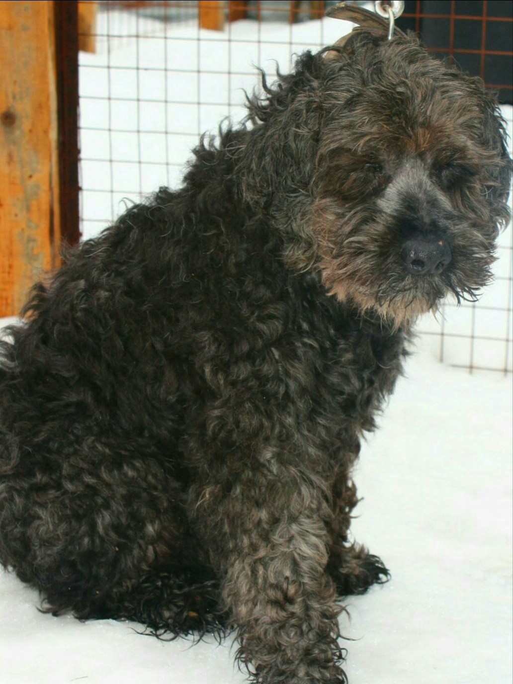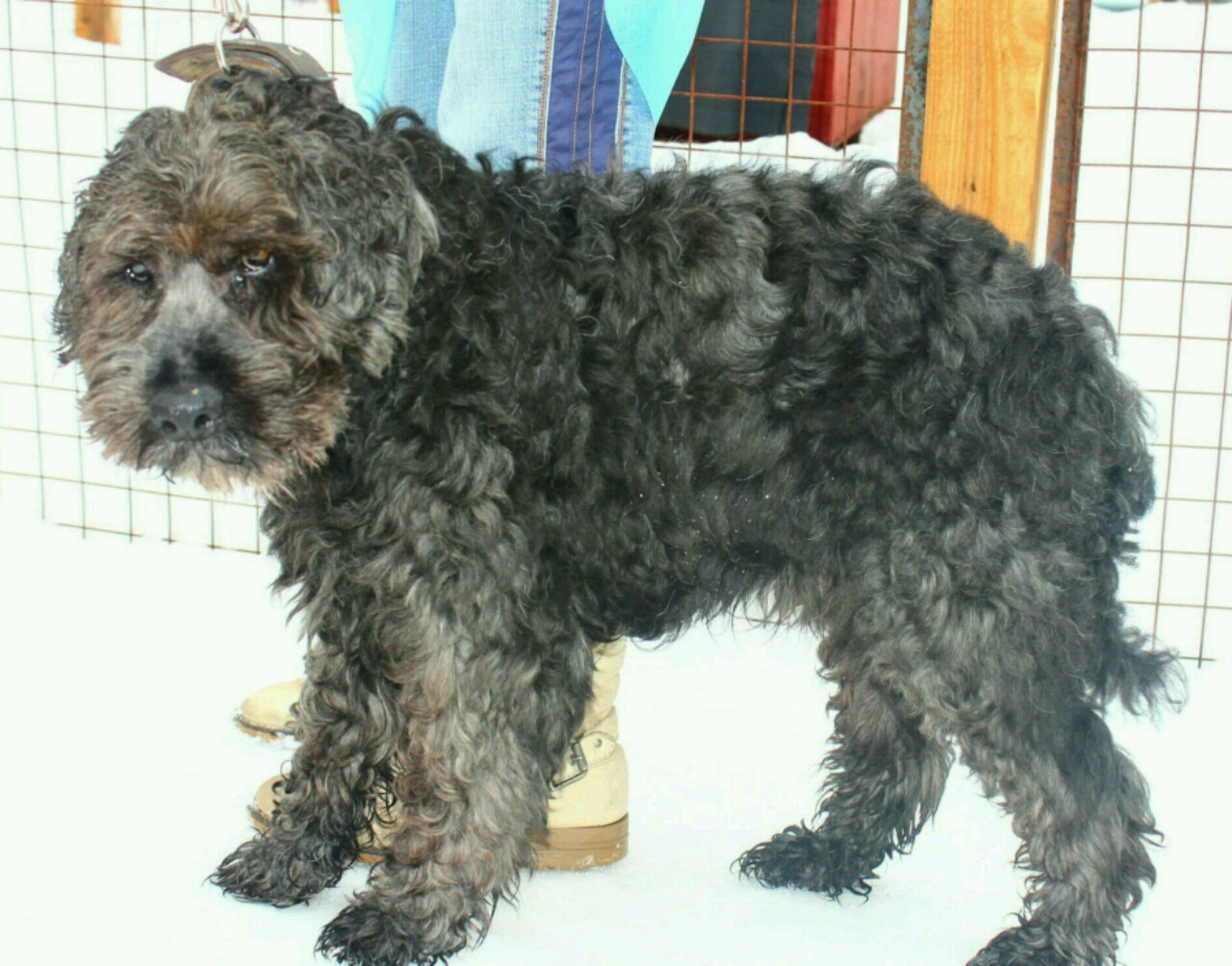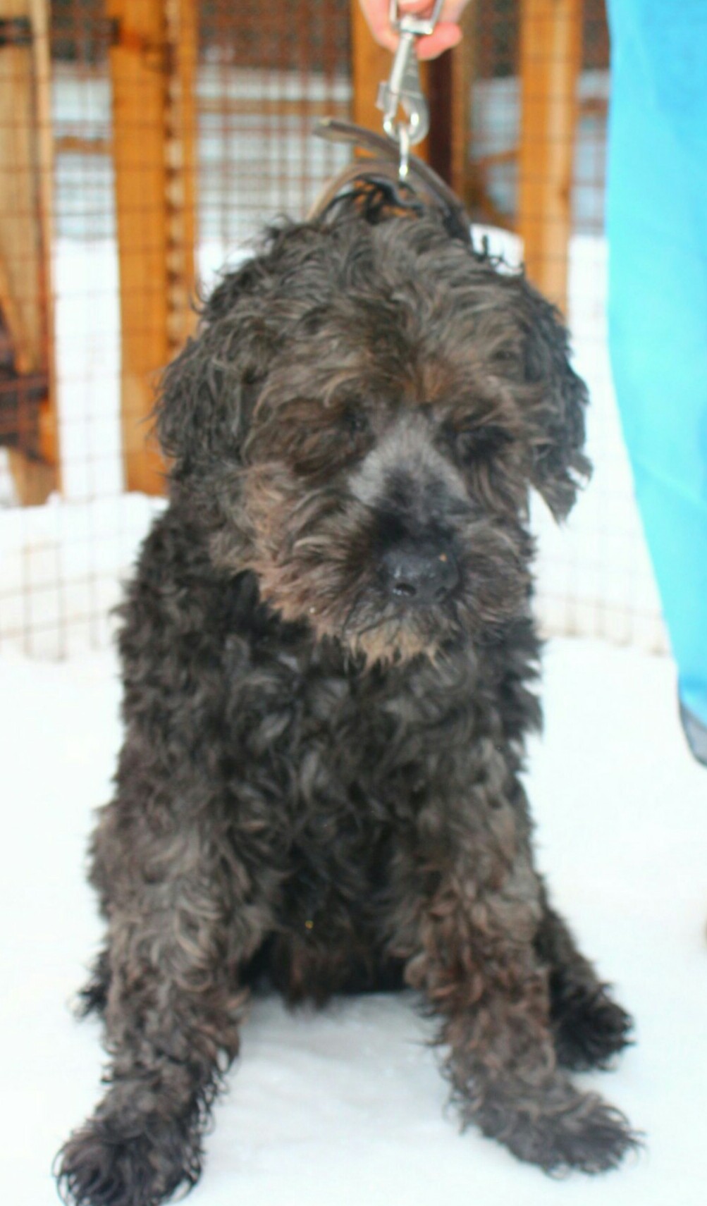 Девочки должны глянуть клеймо и ещё пофоткать.Парень. сидит в стрессе.Шубку у него не стригли, а челку и бороду обстригли.Обещали замерить рост, на взгляд приблизительно 37 см., но это не точно. Сказали, что бельма на глазах нет, но он не видит.