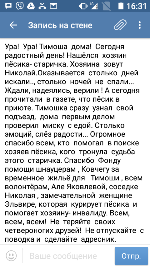 В интернете тоже везде разместила и на клавсе (id 17873) и на еще 3-4 сайтах поиска потеряшек, в песикот http://pesikot.org/forum/index.php?show ... ry11741518 , в группах в контакте, в группах в одноклассниках
