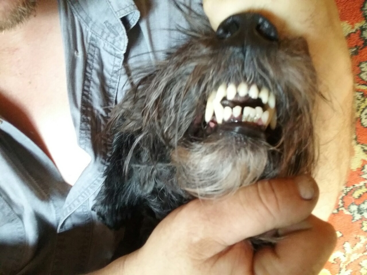 Только что приехали из ветклиники.Зубы чистили.Макс отходит от наркоза,ходит пьяный,но дом охраняет,гавкает исправно!Зубки теперь чистые!Сказали,что нижние могут вылететь,удалять не стали.Обошлось это безобразие в 2500р.Чек попозже выложу. :yes: Макс молодец! :wub: