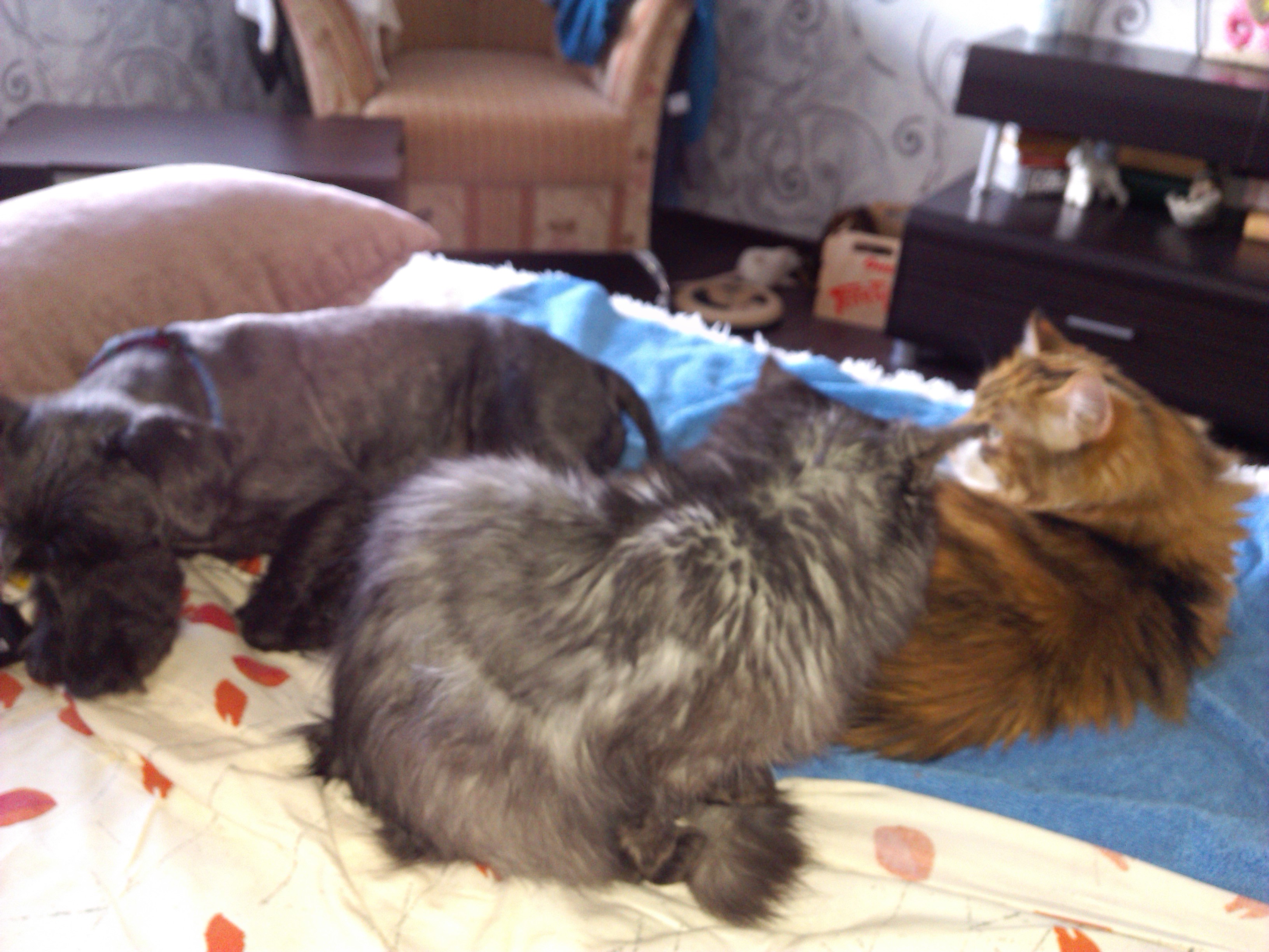 Вот Юлика Шанти не замечала - он играл с игрушками, с упоением жевал младшую кошку, к Шанти не приставал, на меня реагировал меньше. Поэтому ей было относительно все равно
