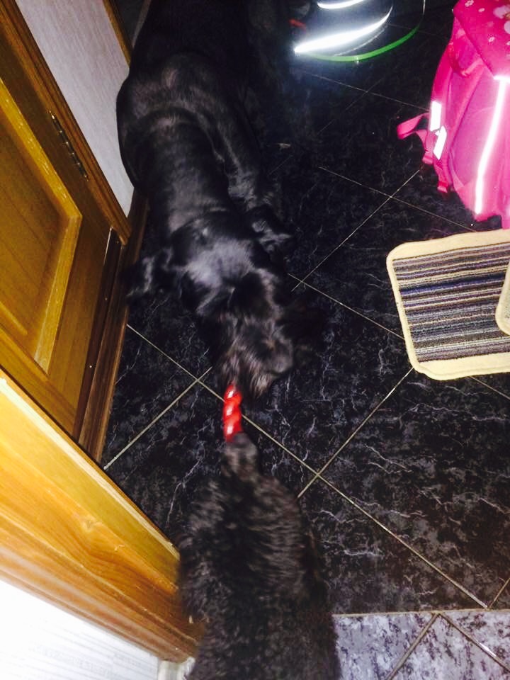 Ая с Ханей чудесно играют в перетяжку, причём Хани всегда уступает. С дочкой она тоже играет чудесно, не сбивает, очень чувственная девочка.