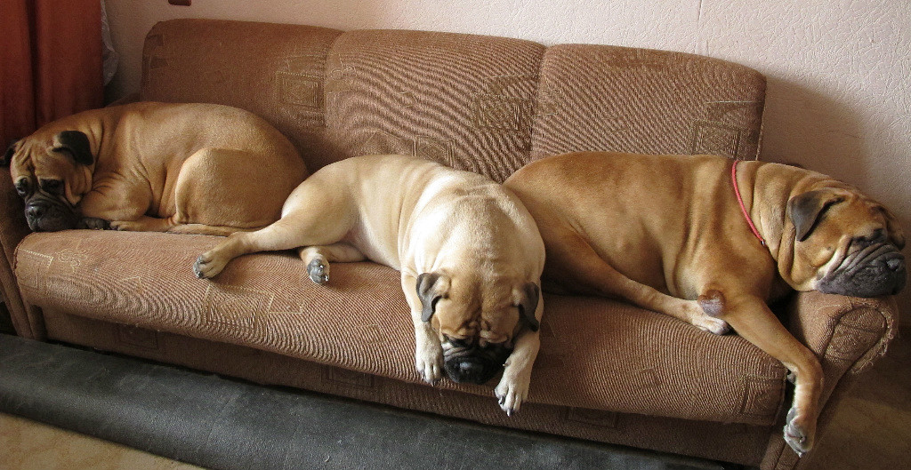 Вечеринка с бульмаской удалась, мусолили друг друга час, потом час приходили в себя. На диван не запрыгивал, нападал на подружку снизу, иногда ставя на диван передние лапы, чтоб ее достать. Был очень счастлив свиданию. Странная любовь, но похоже на настоящее чувство.