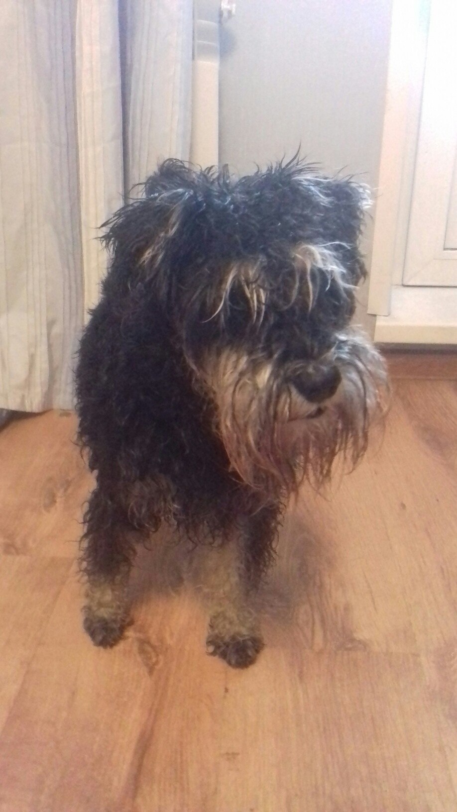 24 февраля, в районе 13-00, в Одинцово, около входа на станцию найден цвергшнауцер. Мальчик контактный, сразу пошёл на ручки. Сказали, что бегает с самого утра. Без ошейника. Заросший в меру, видно, что домашний. Клейма не нашли. Забрали домой, но держать не сможем, т.к. с ризеном общего языка не находят.