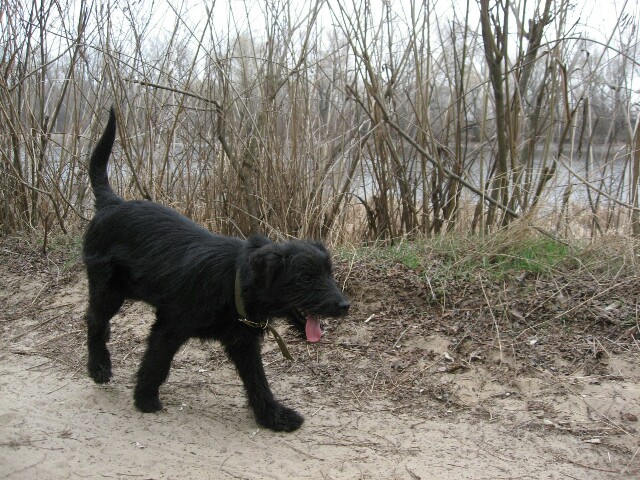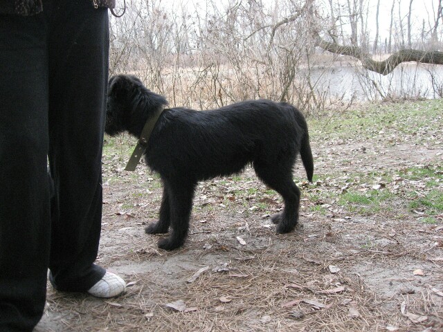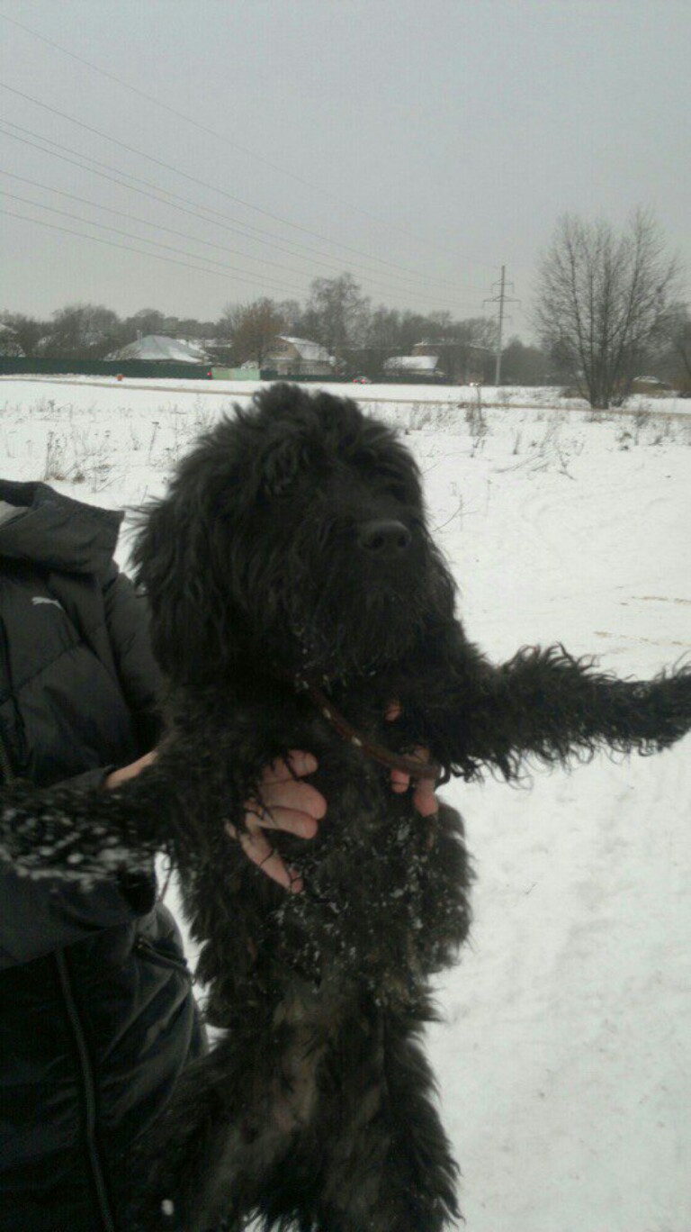 Сегодня съездила сделала новые фото,запорожского щенка !Форумчане жду вашего вердикта!Ася выложит фото,у меня не получилось)))Мое мнение,что это ризененок,учитывая что он месяца полтора назад там появился,потом на месяц пропал и вот уже неделю его придерживают и нормально кормят -он вполне выглядит ризеном.Показывала его фото своему груммеру,породнику миттелей и цвергов.Она тоже видит в нем ризененка. Визуально квадрат присутсивует,если голову в порядок привести ,то и голова неплохая,бугорки есть.Шерсть очень породная,отходит хорошо.Лапы не тонкие,оброслость присутствует,как у ризенов жестких,т.е.она есть ,но без излишества,щетка тоже есть)))Хвост вполне хороший,не бублик и не лабра))) За неделю очень привязался к женщине,ходит хвостиком,к другим осторожно,вкусняшку берет,но соблюдает дистанцию.Чтоб понятней было,это деревня за городом,но в хорошем месте у реки.А в деревне сами знаете главное огород и куры,поэтому никто с ним там церемонится не будет!L.K. писал(а):на первой фотографии похож на нашего метиса - борода, глазки темные...