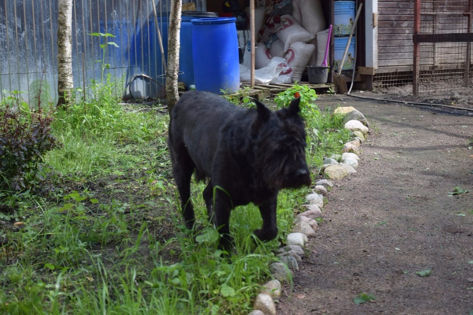 Мужчина он тонко организованный, похоже, волнительный. Не то чтобы был не рад гостям, рад и даже с Аней пообнимался. Мне дал себя погладить, сам повернулся и поинтересовался, что я тут стою, а может намордник сниму? Да и вообще в людях он заинтересован, мне кажется. Но сзади к нему подходить не стоит, явно начинает нервничать. Задние лапы смотреть не дал, забурчал. К Марии, хозяйке передержки, он привязан, мне показалось. Когда она отошла и его оставила с нами, Кеша рванулся за ней, но быстро уговорился остаться и подождать.