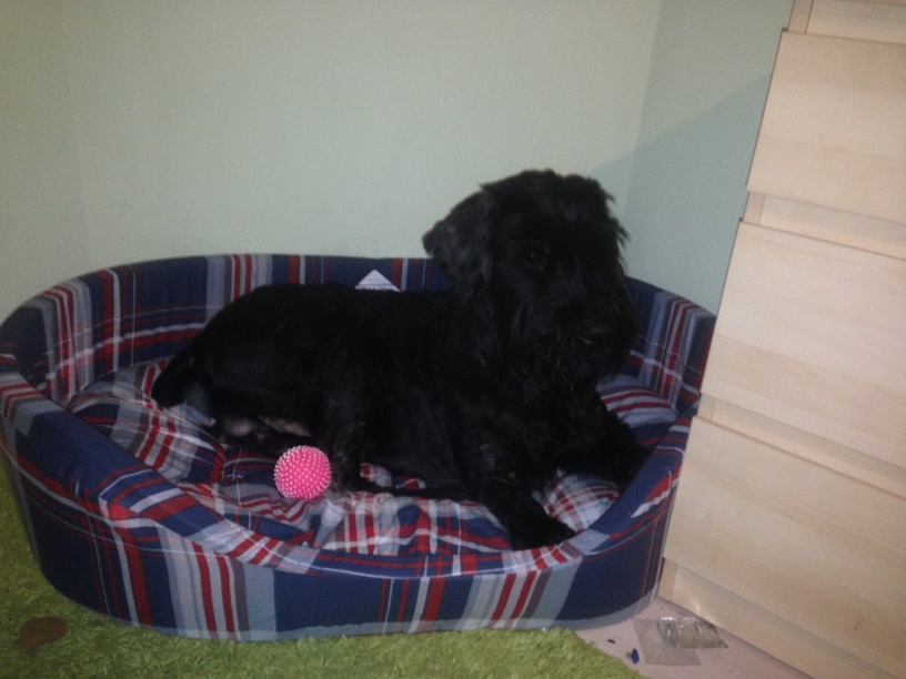 На наши 38кг счастья брали №8 и Берк без проблем распределяет там свои лапы, тулово, и прячет от меня под подстилку свои мячики.