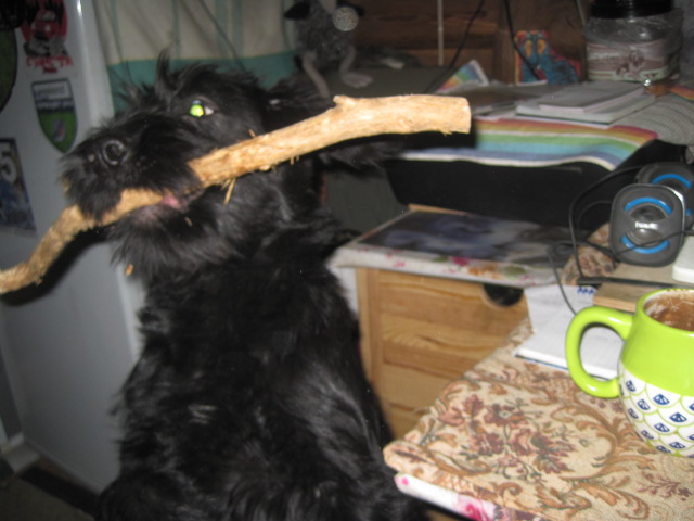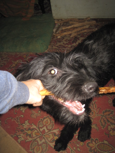 Сегодня Долька ,вдруг,увидела,что помимо её подружки Линды,есть ещё и мальчик..мальчик Шкипер...мальчик которого можно потролить, свернуть бараночкой ,и проделывать ещё много разных девчачьих штук......К Генке Долька относится как озорная ,избалованная гимназистка к старому , ворчливому и надоедливому гувернёру, который носится за ней и пытается прогавкать в уши правила хорошего поведения))))и которого она в упор не видит и не слышит, чем доводит старичка почти до визга))) Мухтар - держит глухую оборону под кроватью....но держит , видимо не только оборону, но и магнит, притягивающий малолетних,нахальных фрекен..... И вот вдруг девочка увидела мальчика... как будто раньше он ходил в плаще невидимке, а сегодня вдруг снял!!!! Долька,маленькая ведьма, умело закрутила ураган "ДолькаШкипер" и минут сорок этот вихрь носился по дому..расшвыряв всех остальных собак по углам (Генка отсиживался в клетке)......Сейчас Шкипер залёг на моей кровати, куда девочкам вход заказан, а маленькая бестия, уютно свернувшись мягоньким калачиком,терпеливо ждёт его внизу)))))