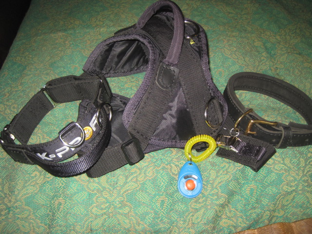 В воскресенье, поняла что из Генкиного красного ошейника Тёмка-О.Тяпка ВЫРОС))))) и заказала у Ларисы Цветковой новый ошейник ну и шлейку как у мальчишек только ризенячью.... Сегодня получили обновки...