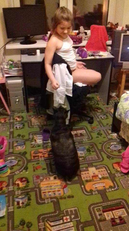 Очень толстый,прям ооочень!!!Я ему сегодня до 50 грамм урезала пайку,не фиг!И так весь еле ходит еще и кг 3 лишних.