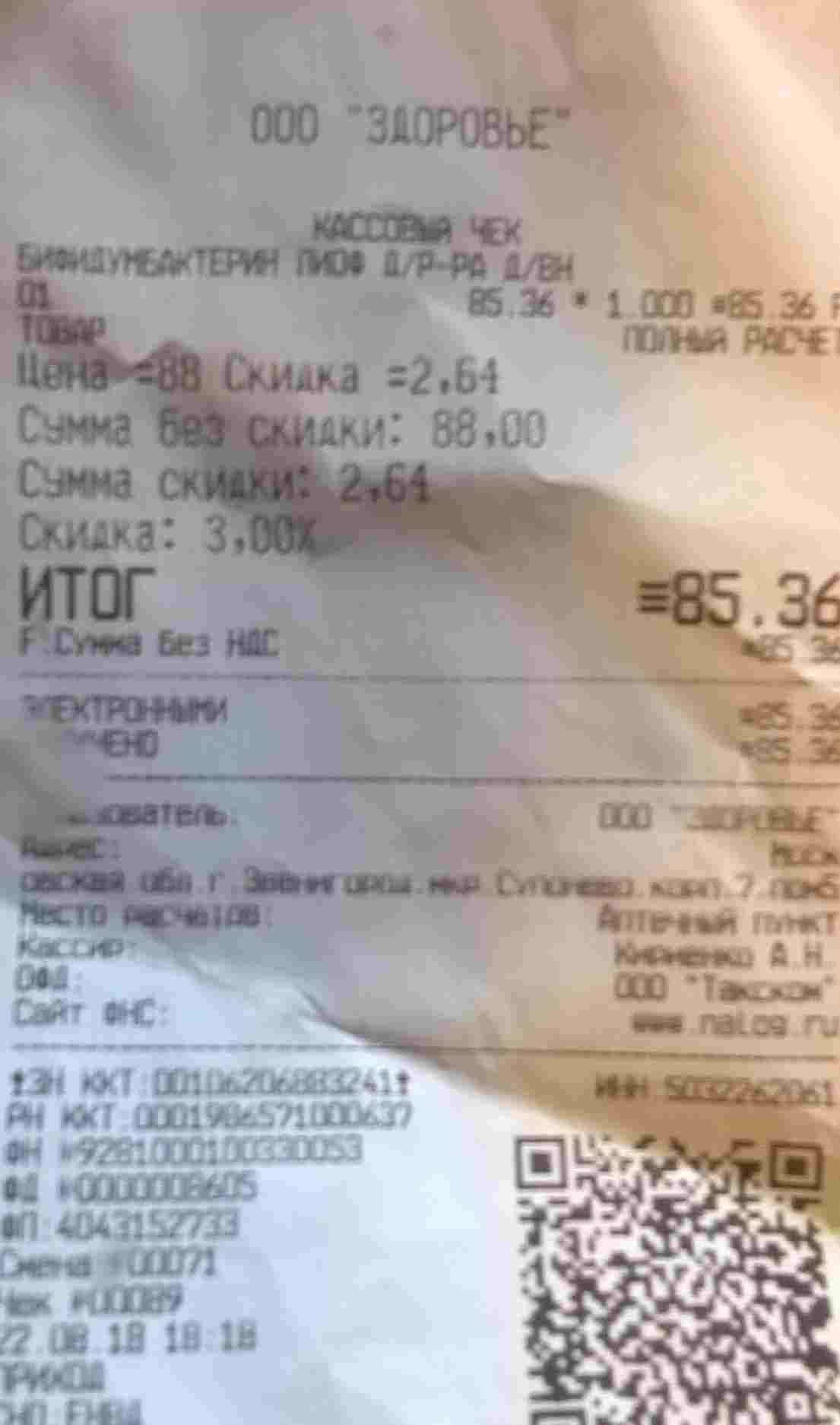 Расход по операции 7474 (7389 операция 85 пробиотик)