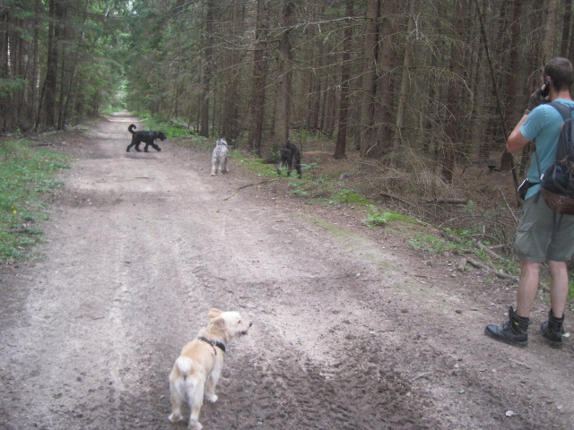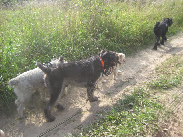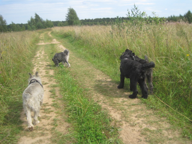 Знакомились на нейтралке, в полях))) потом гуляли по лесу)) Бухтай очень достойно выдержал процедуру знакомства с нахалятами)))