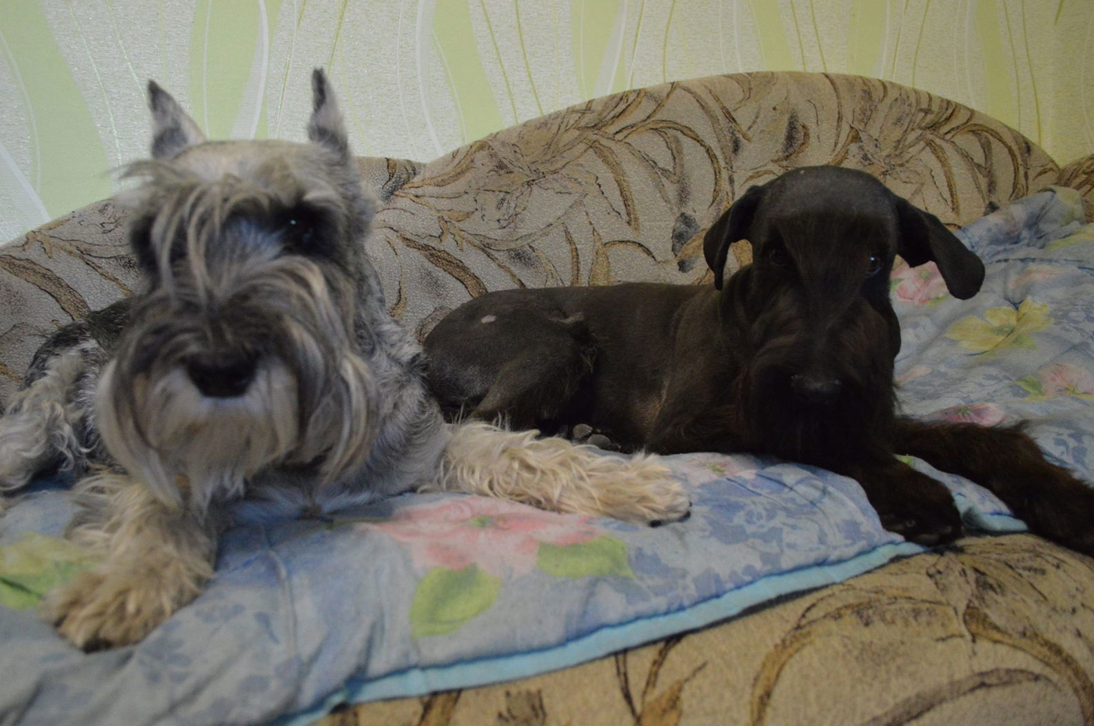 Молодая,до года, фенотипно черный миттельшнауцер!Стерилизованая,привитая,здоровая! Контактная ,с присущим шнауцериным характером!