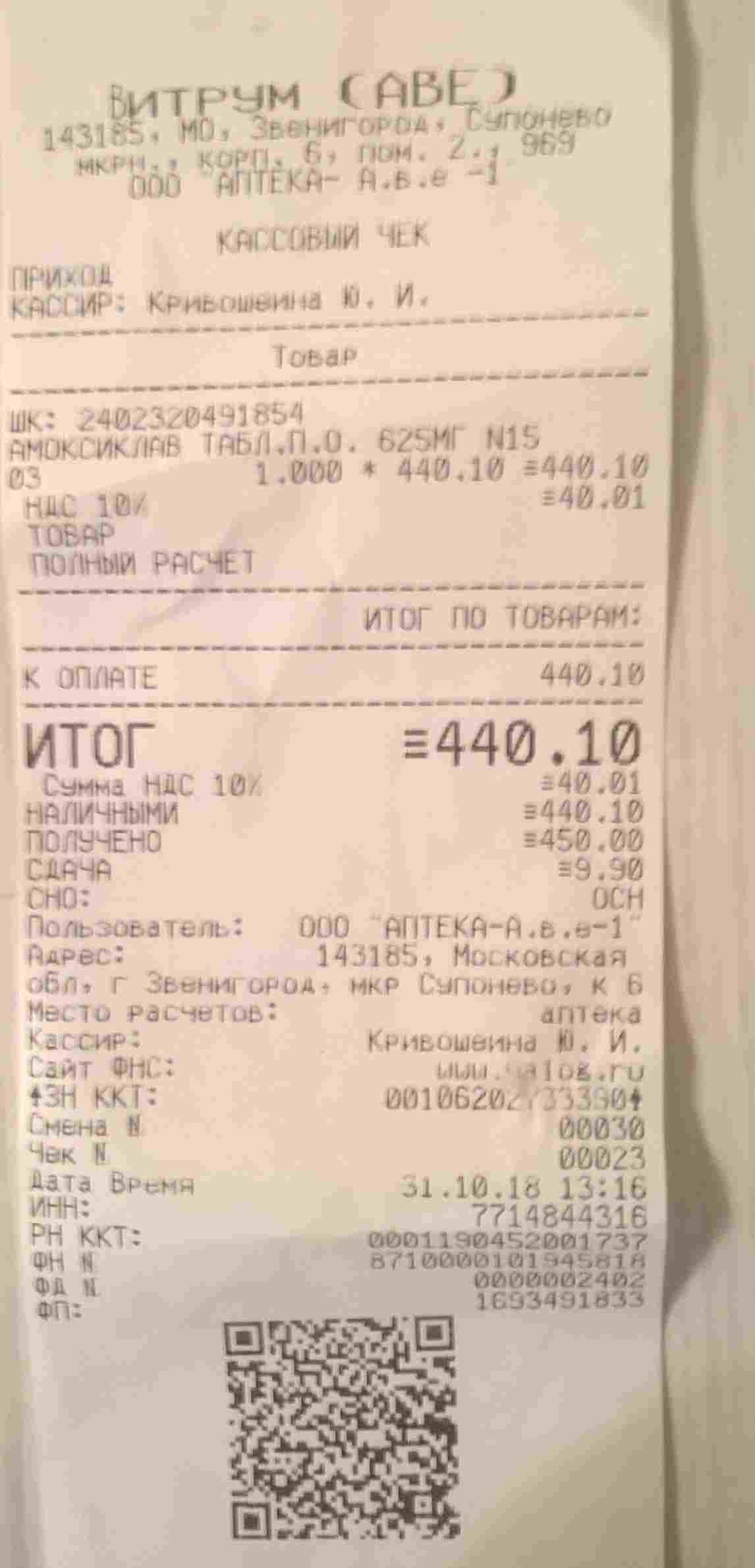 Расход антибиотик 440р