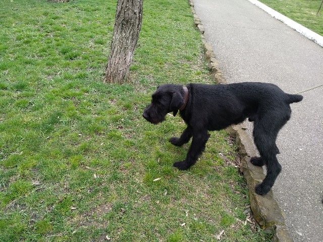 Одна хорошая семья почти неделю пыталась изловить с улиц щенка метиса ризеншнауцера. По поводу метиса решила я, т.к. радужка на глазах показалась мне светлой.