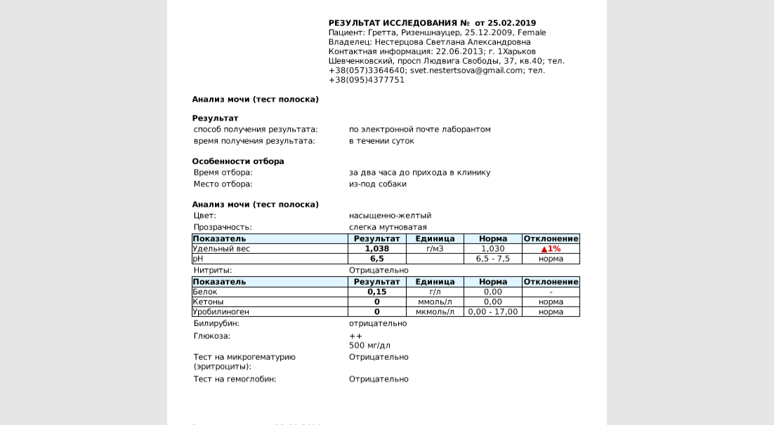 Из-за того, что Гретта 2 раза упала на прогулке и стала иногда спотыкаться на переднюю левую лапу, стала ей колоть травматин. 11.04.19 ходили на осмотр к ветеринару. Выявлен болевой синдром в пояснично-кресцовом отделе. По рекомендации ветеринара сдан биохимический анализ крови на креатинин, мочевину, кальций и фосфор.