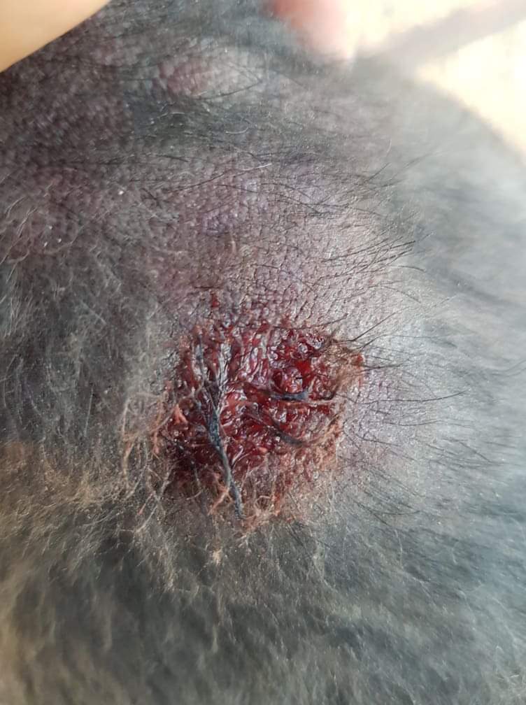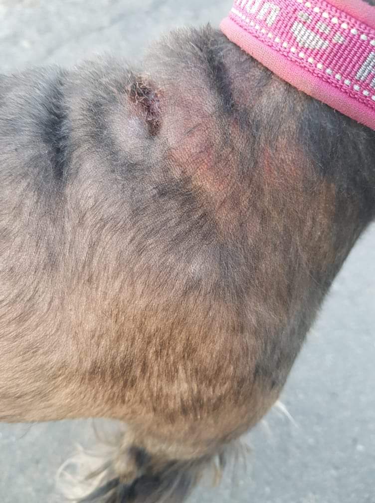 Очаг на ухе и на загривке обнаружила одновременно. Но на загривке была язва похоже в месте укола фортикарба и эта язва на хлоргексидине очень быстро ушла - с субботы до вторника почти зажила, так же ушли и пятна/шишки. А вот на ухе очаг увеличился от первоначального и не уменьшается. Корок только на не нет. При обработке безболезненно.