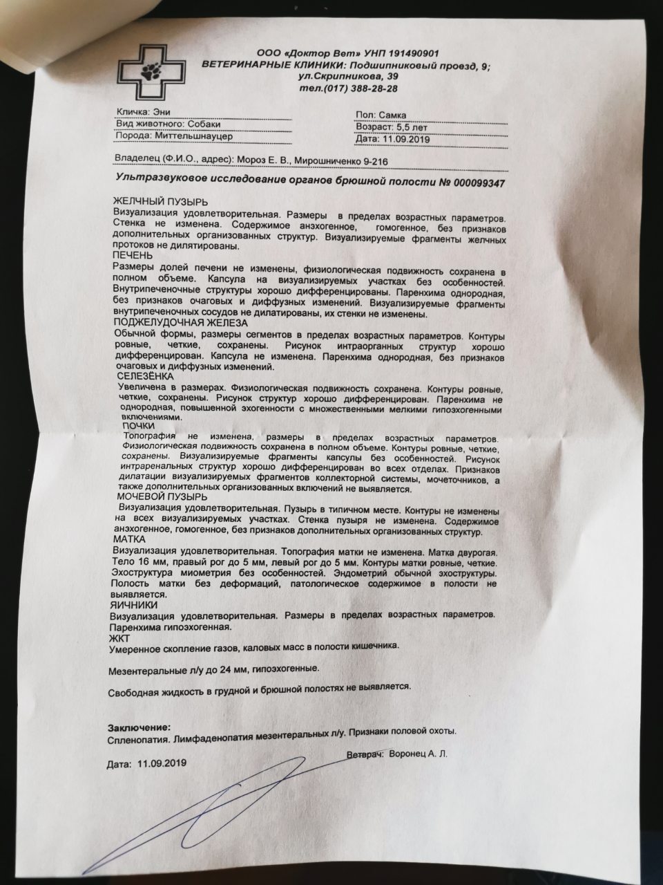 Узи показало, что минская миттелька с живодерки имеет вопросы по селезенке, лимфоузлам и у нее только -только закончилась течка :eh: