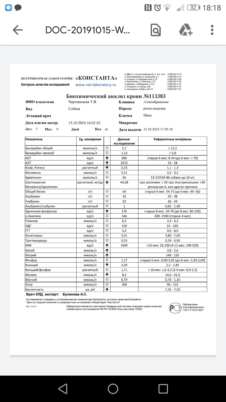 По анализам у собаки нет печени или химическое отравление.