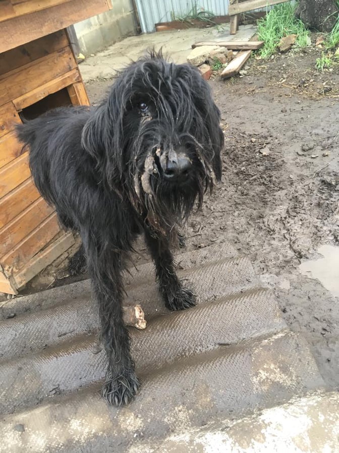 И снова здравствуйте! Писать много. сразу ужас от ее вида охватил, затем легкая паника. Как будто ее мордой грязь выгребали. Это какой-то резвый пятимесячный щенок, не знающий абсолютно НИЧЕГО. Ни "сидеть, лежать, нельзя", как начала напрыгивать на меня, прямо до головы, всю в грязь вымазала, сошла с ума от свободы и давай носиться по двору. Затем я ее все же придержала за ошейник, чтобы хоть сверху колтунища срезать, на каждое прикосновение к ней издавала свист, пытаясь прихватить зубами, как только начинала срезать, ножницы даже еле режут, куски как валенки отпадают. Один сплошной колтун. С мордой это вообще караул, колтуны, облепленные грязью. Самое жуткое - это то, что в ушах. С палец толщиной сантиметров до десяти висят, и я не знаю, как от них избавиться, выстригать что ли как-то изнутри, тянуть ей больно и такое не вытащишь. Не знаю, брить ее или нет, там ничего другого не сделаешь.