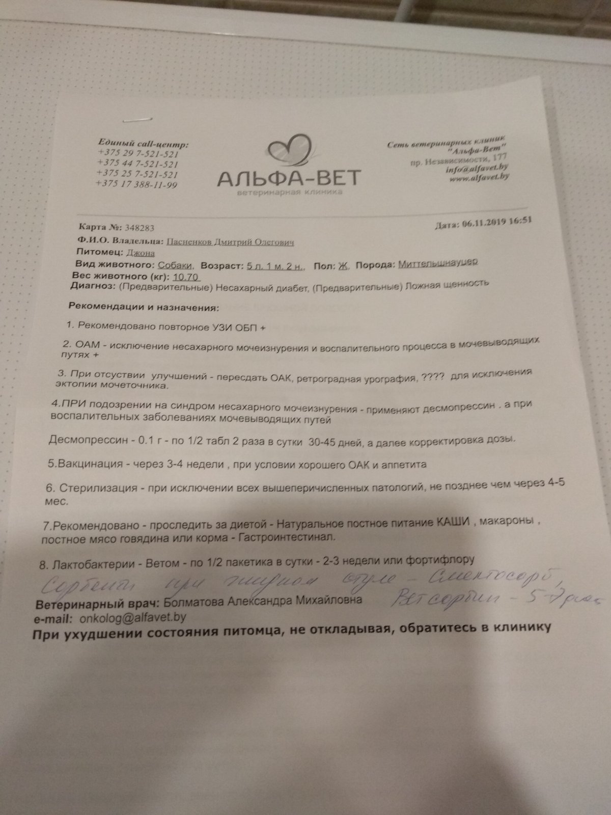 Корм куплен после последнего визита к вету 13 ноября