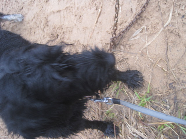 Вчерашние 20 минут ,как оказалось,убрали панику!! Нет, цепь ей по прежнему не нравится,и дело с ней Лёлька иметь не хочет, старается даже не смотреть,но уже нет-ни рывков,ни паники,ни стенаний,ни полуобморочного состояния! Перешагивает через цепь аккуратно,нехотя , но уже без баранок!!!