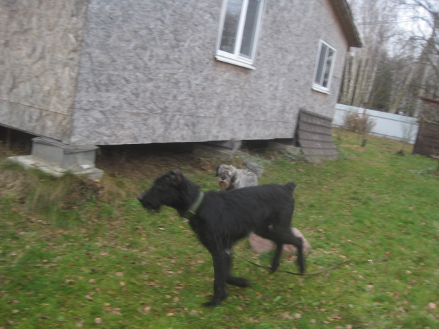 ..Если бы не Шкипер. Выпущенный на смену Тёме он вылетел из дома с уже выключенным мозгом((( И сделал садку даже не обнюхав гостя..понятно,что где-то в районе коленки высоченной собаки...Причём раздухарился так что остановиться сам уже не мог, а Лукаш даже поднял холку и зарычал.....(Тёму он встретил иначе..)